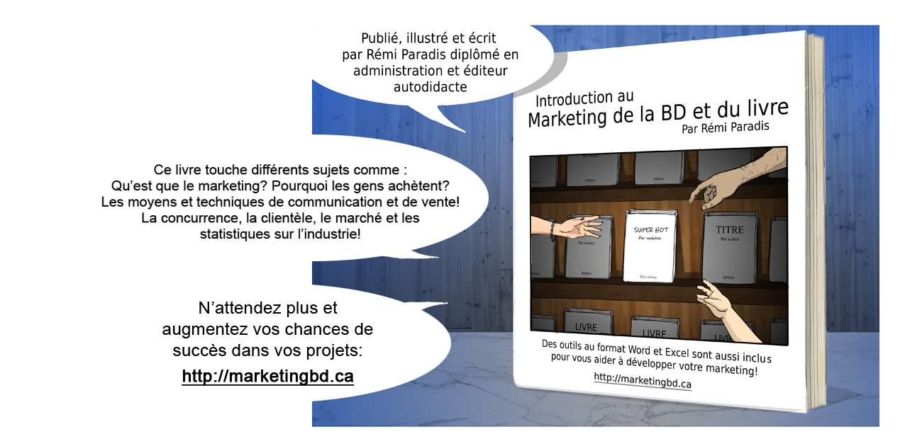 Durant mes études en administration, j’ai eu beaucoup de plaisir à suivre mes cours en marketing. Lors de mes recherches sur le sujet, j’ai remarqué qu’il y avait peu de livres qui étaient spécialisés sur la bande dessinée québécoise ou du livre. Alors, j’ai tout de suite pensé à en sortir un pour en faire bénéficier les autres.
